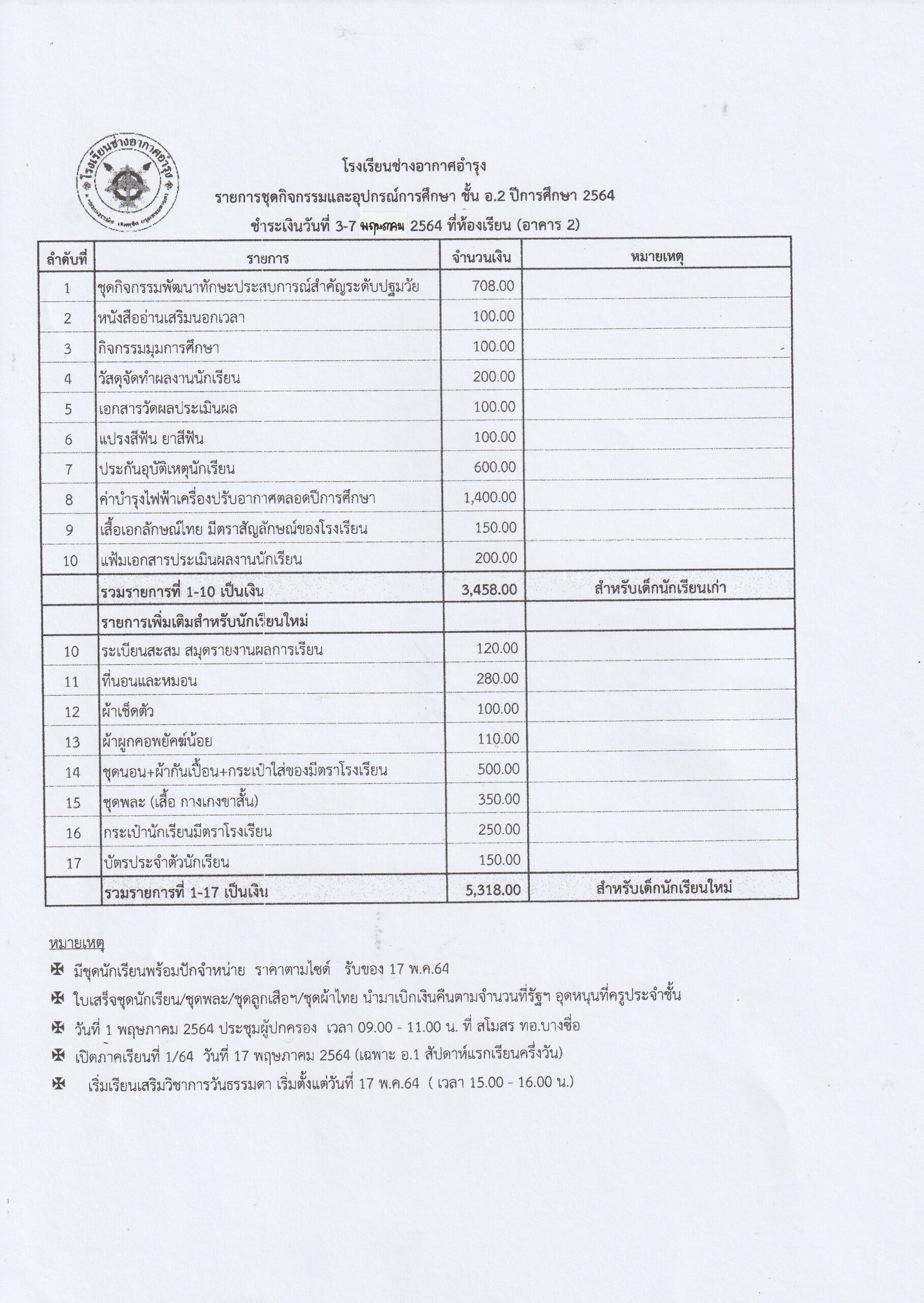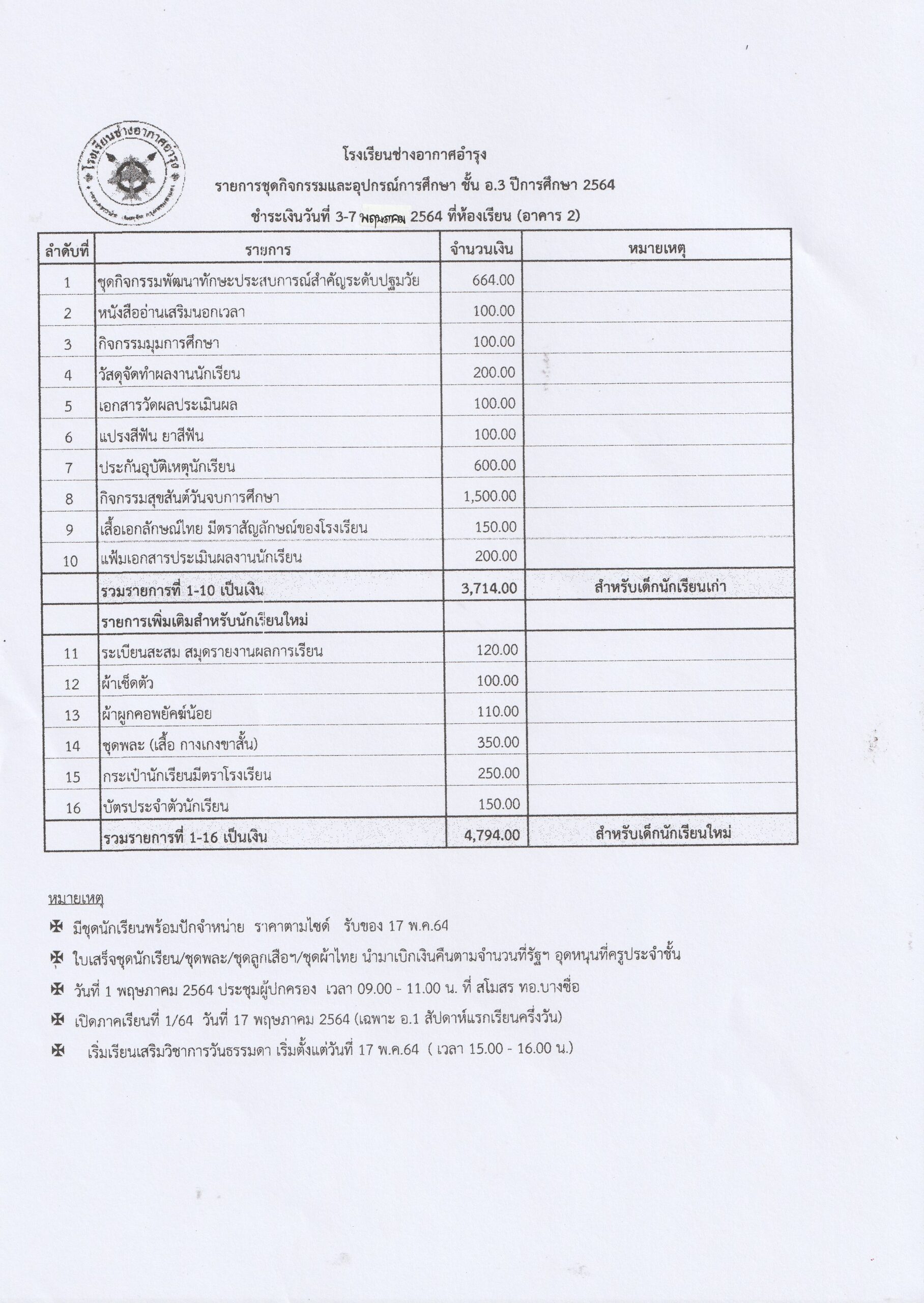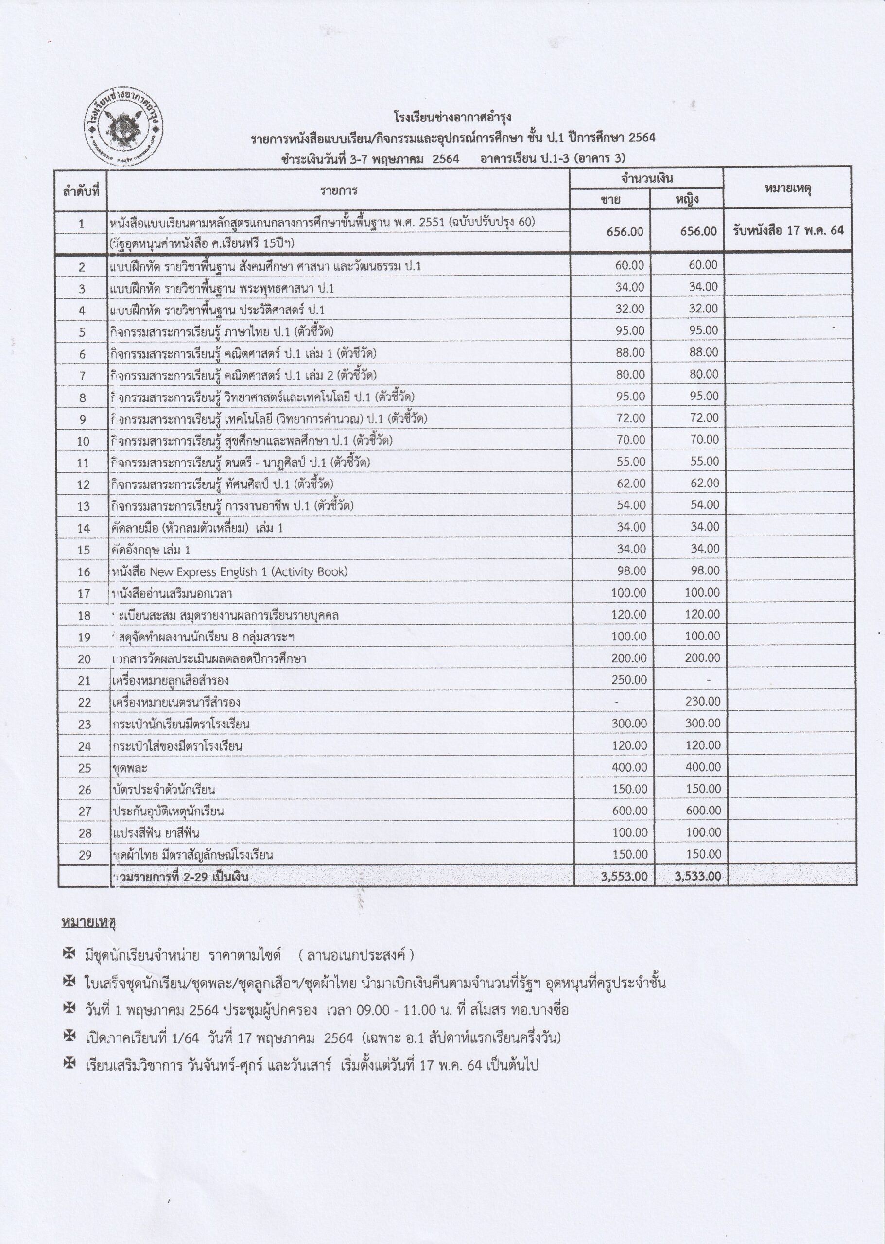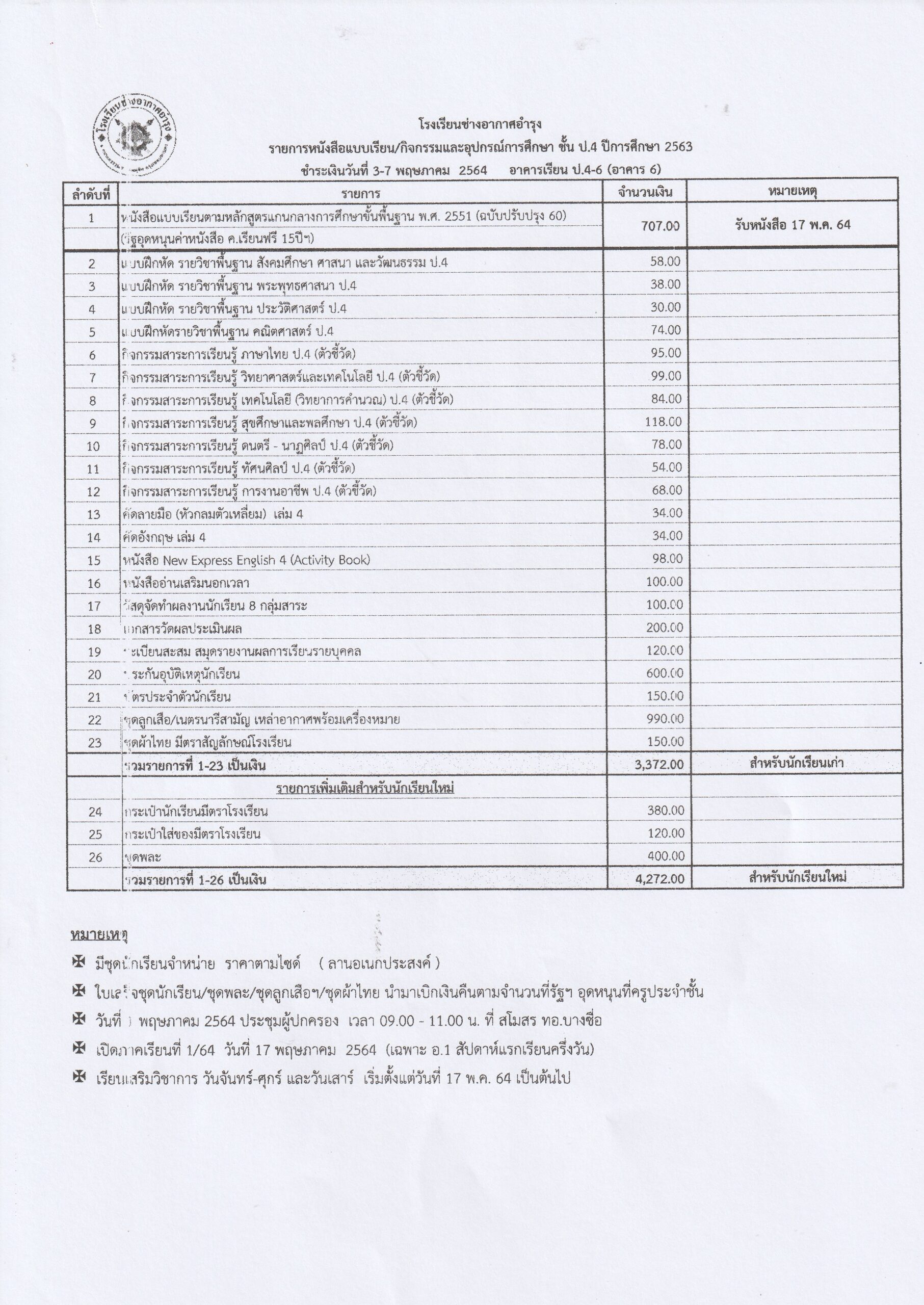 ประชาสัมพันธ์ รายการหนังสือเรียน / กิจกรรมและอุปกรณ์การศึกษา ระดับชั้น อ.1-ป.6 ปีการศึกษา 2564 21 เมษายน 2021 Webmaster จำนวนเข้าชม : 305 รายการหนังสือเรียน / กิจกรรมและอุปกรณ์การศึกษา ระดับชั้น อ.1-ป.6 ปีการศึกษา 2564 กำหนดชำระเงิน วันที่ 3-7 พฤษภาคม 2564 รายละเอียด ดังแสดง