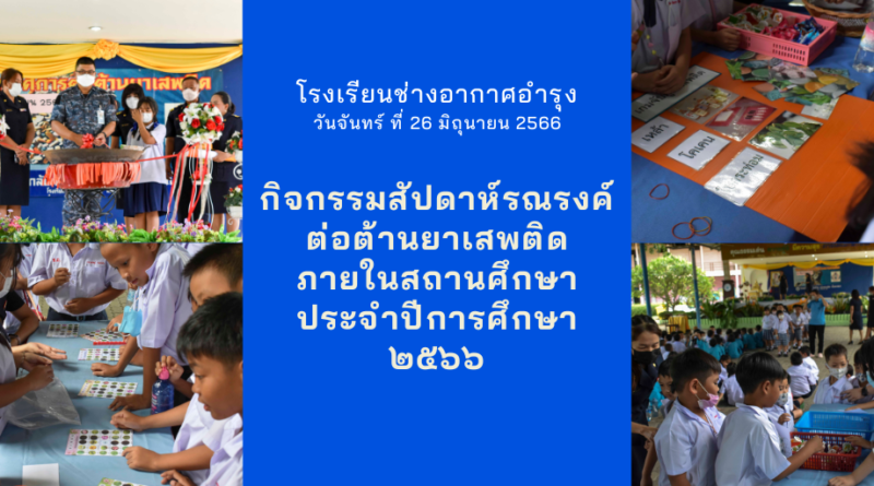 เมื่อวันที่ ๒๖ มิถุนายน 2566 โรงเรียนช่างอากาศอำรุง จัดกิจกรรมสัปดาห์รณรงค์ต่อต้านยาเสพติดภายในสถานศึกษา ประจำปีการศึกษา ๒๕๖๖ เพื่อรณรงค์ต่อต้านยาเสพติด ให้นักเรียนและสังคมห่างไกลยาเสพติด โดยในกิจกรรมวันนี้ได้มีกิจกรรมหลายอย่าง เช่น นักเรียนอ่านประวัติวันยาเสพติดโลก “วันต่อต้านยาเสพติด” การแสดงของนักเรียนระดับประถมตอนต้น มอบเกียรติบัตรแก่นักเรียนที่ชนะการประกวดวาดภาพระบายสี”วันต่อต้านยาเสพติด” การเล่มเกมตอบคำถาม และบิงโกสารเสพติด